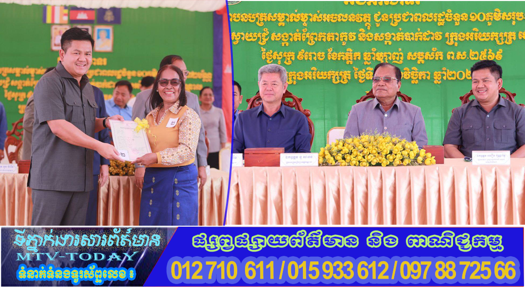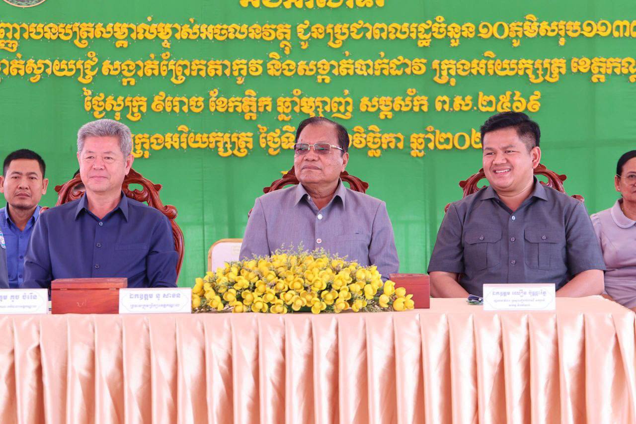វិញ្ញាបនបត្រសម្គាល់ម្ចាស់អចលនវត្ថុចំនួន ១១,៣៣២​ ប័ណ្ណ​ ជូនបងប្អូនប្រជាពលរដ្ឋ​ ចំនួន១០ភូមិ​ ស្ថិតនៅ​ សង្កាត់ស្វាយជ្រុំ សង្កាត់ព្រែកតាកូវ និងសង្កាត់បាក់ដាវ​ ក្រុងអរិយក្សត្រ ខេត្តកណ្ដាល។