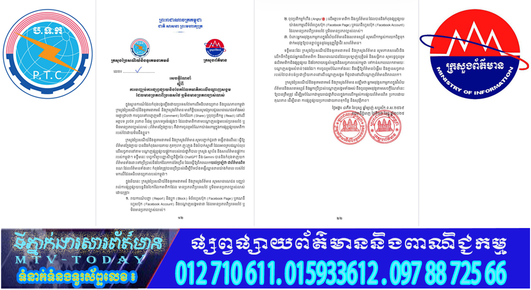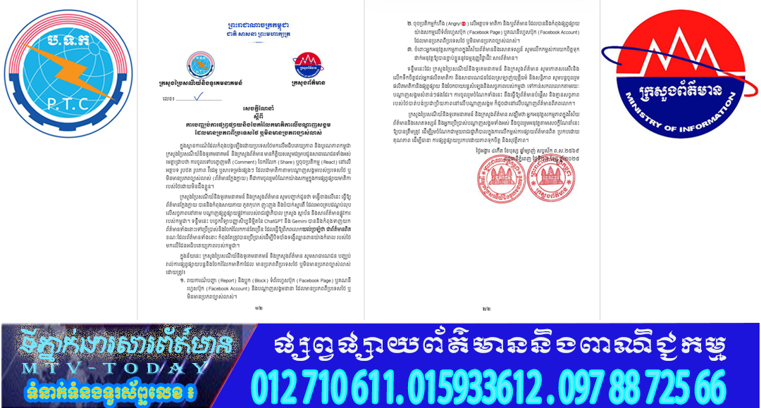 សេចក្តីណែនាំ ស្តីពីការបញ្ឈប់ការផ្សព្វផ្សាយ និងចែករំលែកមាតិកាលើបណ្តាញសង្គម ដែលមានប្រភពពីប្រទេសថៃ ឬមិនមានប្រភពច្បាស់លាស់
