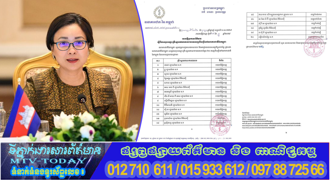 ធនាគារជាតិនៃកម្ពុជា បានសម្រេចលុបឈ្មោះគ្រឹះស្ថានឥណទានជនបទមួយចំនួនចេញពីបញ្ជីនៅធនាគារជាតិនៃកម្ពុជា