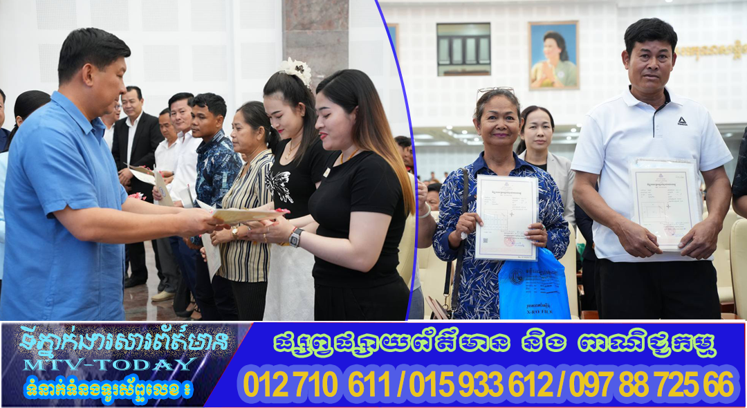ក្រសួងរៀបចំដែនដី នគរូបនីយកម្ម និងសំណង់ បាននឹងកំពុងបន្តដំណើរការចេញវិញ្ញាបនបត្រសម្គាល់ម្ចាស់អចលវត្ថុ ចំនួន ៥២៩បណ្ណ ផ្តល់ជូនអតិថិជនតាមបុរីមួយចំនួន