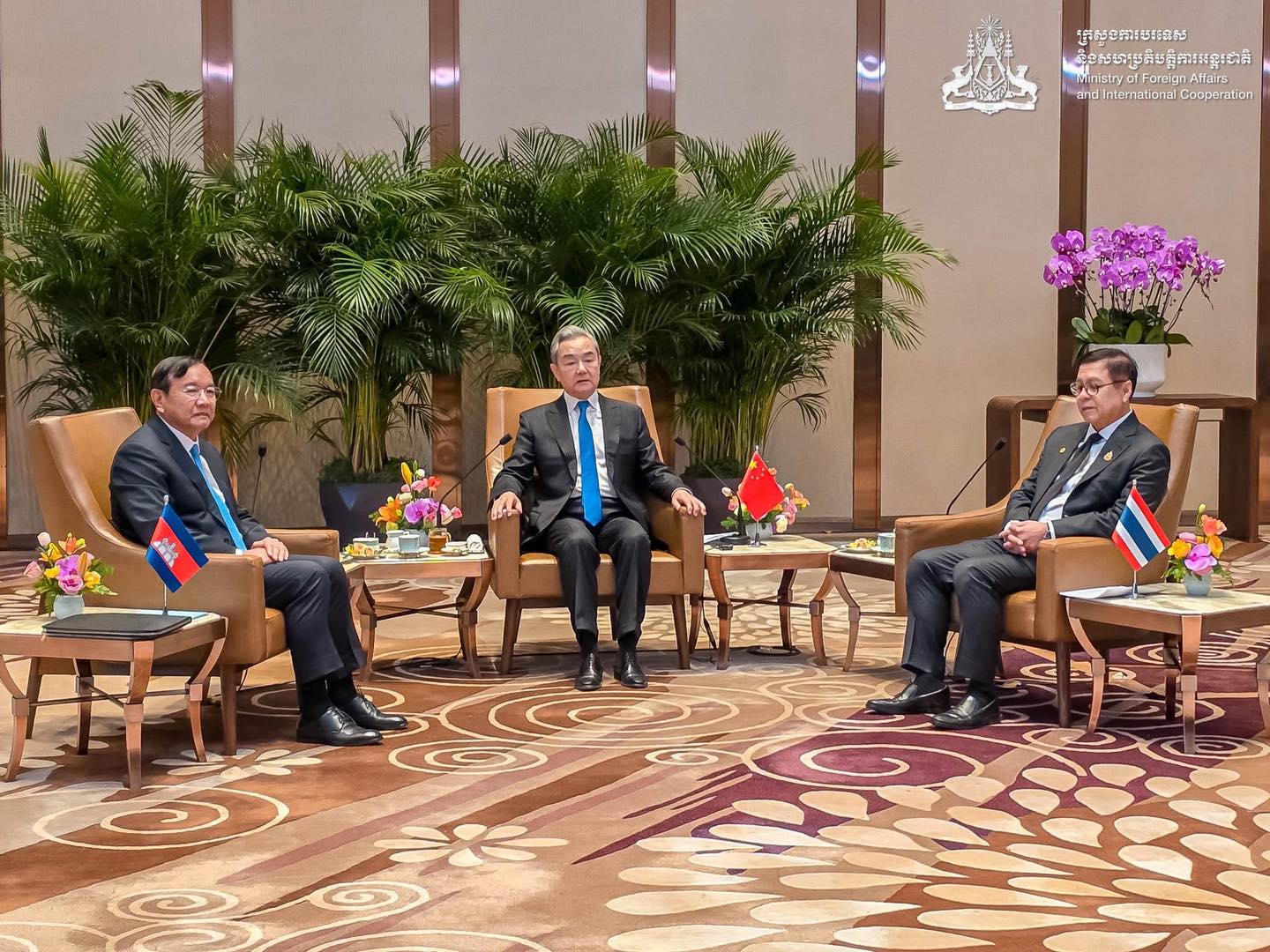 His Excellency Prak Sokhonn, Deputy Prime Minister and Minister of Foreign Affairs and International Cooperation of the Kingdom of Cambodia, participated in a trilateral meeting with His Excellency Wang Yi, Minister of Foreign Affairs of the People’s Republic of China, and His Excellency Sihasak Phuangketkeow, Minister of Foreign Affairs of the Kingdom of Thailand