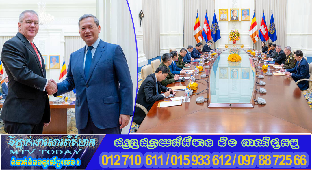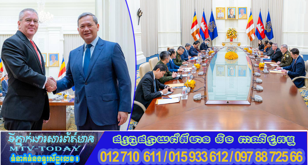 ភ្នំពេញ ៖ នាព្រឹកថ្ងៃទី១០ ខែមករា ឆ្នាំ២០២៦ សម្តេចមហាបវរធិបតី ហ៊ុន ម៉ាណែត នាយករដ្ឋមន្ត្រីនៃព្រះរាជាណាចក្រកម្ពុជា បានអនុញ្ញាតឱ្យឯកឧត្តម Michael George DeSombre ឧបការីរដ្ឋមន្ត្រីការបរទេសសហរដ្ឋអាម៉េរិក ទទួលបន្ទុកតំបន់អាស៊ីបូព៌ា និងប៉ាស៊ីហ្វីក ចូលជួបសម្តែងការគួរសម និងពិភាក្សាការងារ។
