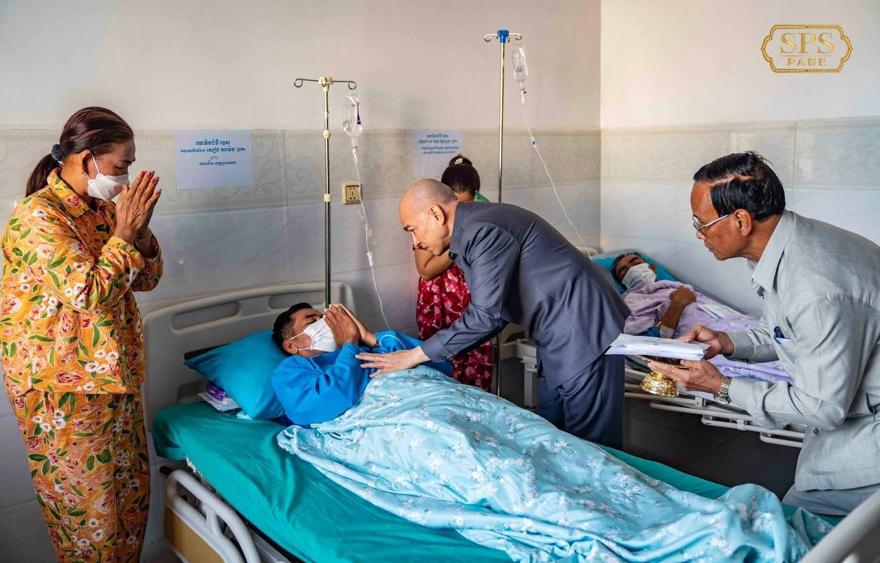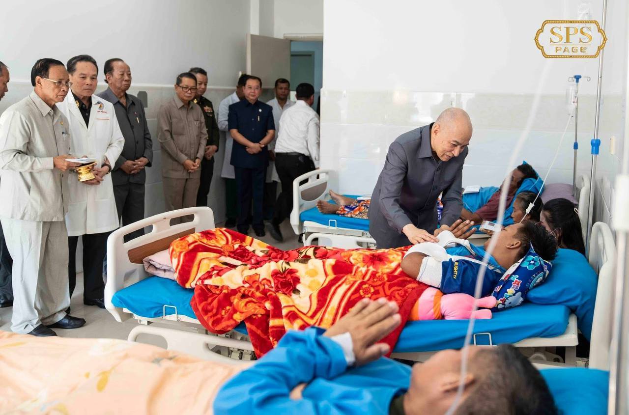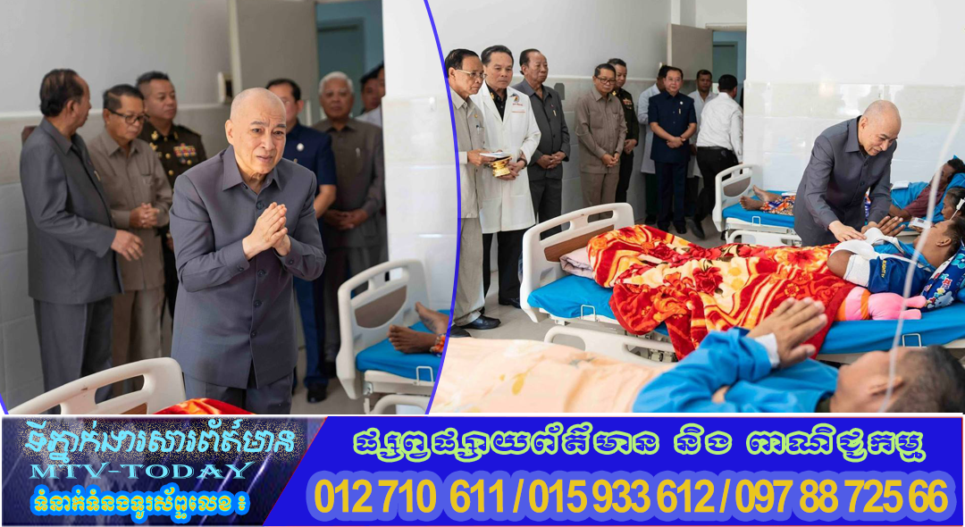 ព្រះករុណាជាអម្ចាស់ជីវិតលើត្បូង ព្រះបាទសម្តេចព្រះបរមនាថ ព្រះមហាក្សត្រ នៃព្រះរាជាណាចក្រកម្ពុជា ជាទីគោរពសក្ការៈដ៏ខ្ពង់ខ្ពស់បំផុត ព្រះអង្គសព្វព្រះរាជហឫទ័យ ស្តេចយាងសួរសុខទុក្ខវីរកងទ័ពសមរភូមិជួរមុខ ដែលកំពុងសម្រាកព្យាបាលនៅមន្ទីរពេទ្យព្រះកេតុមាលា