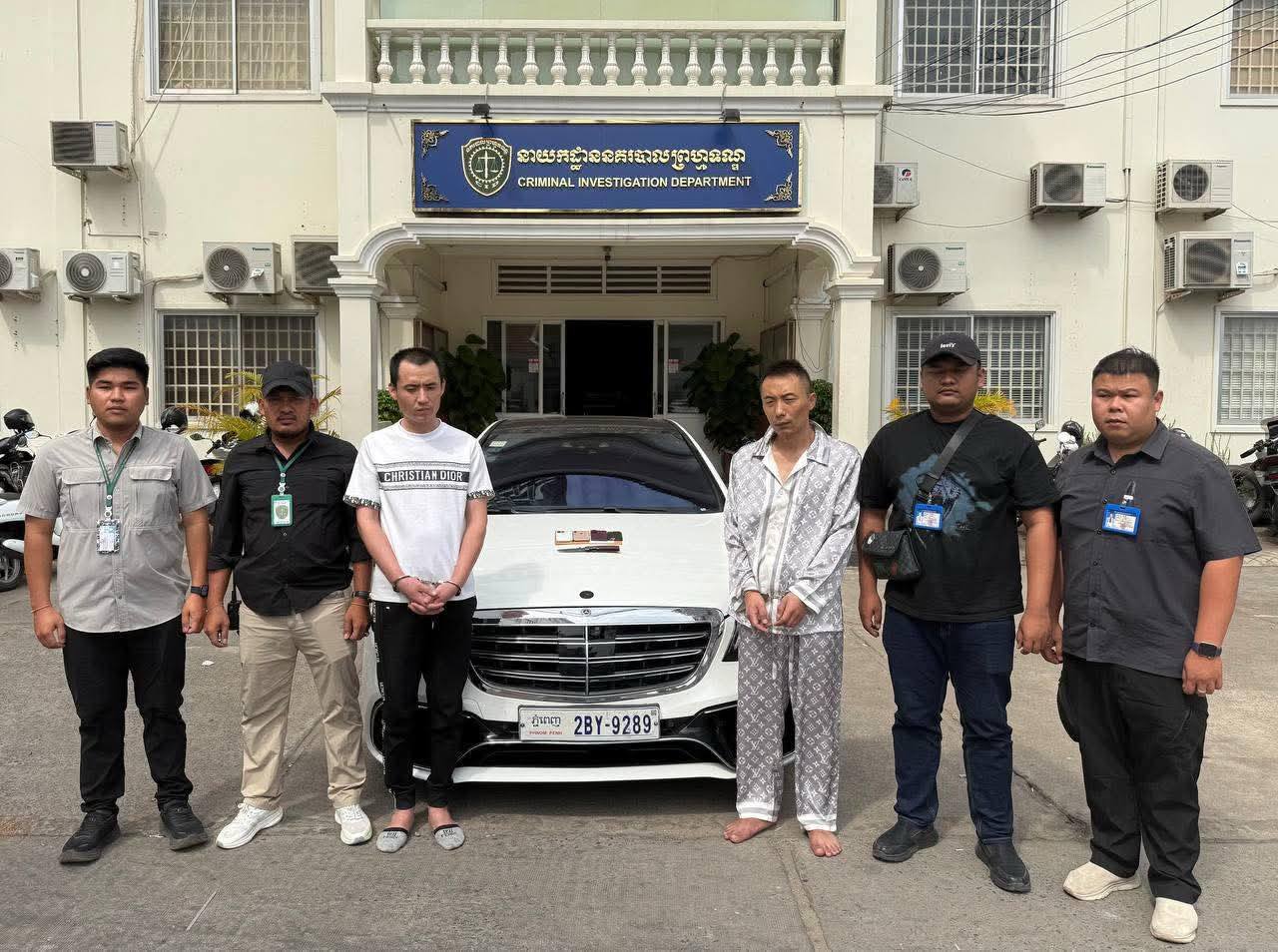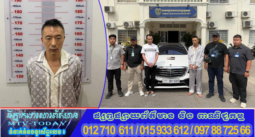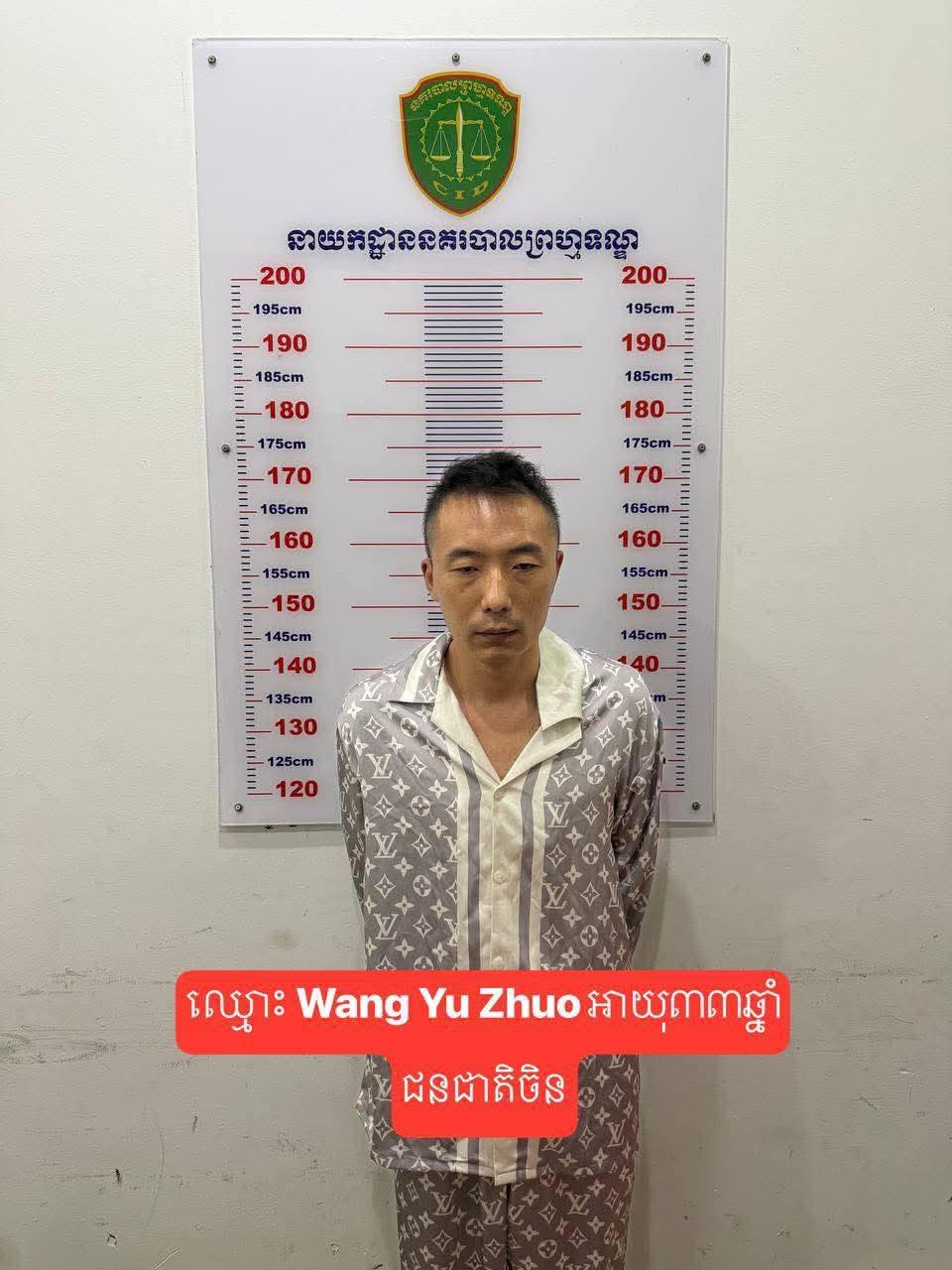 ២-ឈ្មោះ Wang Yu Zhuo ភេទប្រុស អាយុ៣៣ឆ្នាំ ជនជាតិចិន។ ឃាត់ខ្លួនត្រង់ចំណុចផ្លូវ១៩៨៦ សង្កាត់ភ្នំពេញថ្មី ខណ្ឌសែនសុខ រាជធានីភ្នំពេញ ។