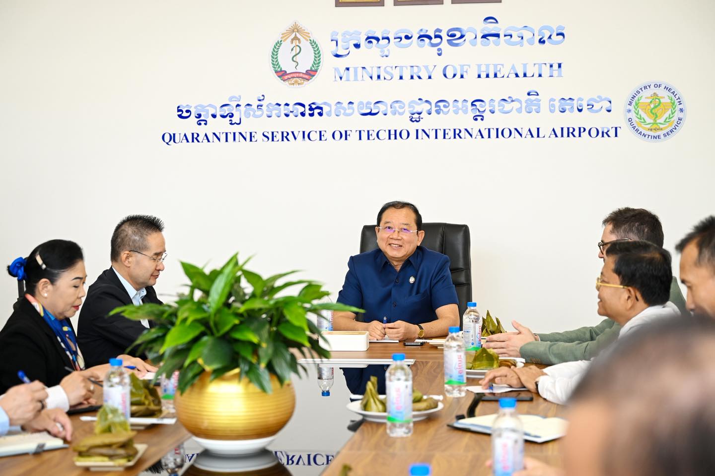 ភ្នំពេញ ៖ នាព្រឹកថ្ងៃពុធ ១០កើត ខែមាឃ ឆ្នាំម្សាញ់ សប្តស័ក ព.ស.២៥៦៩ ត្រូវនឹងថ្ងៃទី២៨ ខែមករា ឆ្នាំ២០២៦ ឯកឧត្តមសាស្ត្រាចារ្យ ឈាង រ៉ា រដ្ឋមន្ត្រីក្រសួងសុខាភិបាល អមដំណើរដោយ លោកឧកញ៉ា វ៉ាន់ ឆារស៍ នាយកគ្រប់គ្រងក្រុមហ៊ុន ខេមបូឌា អ៊ែរផត អិនវេសមិន ខូអិលធីឌី ឯ.ក (CAIC) និងមានការចូលរួមពី ឯកឧត្តម លោកជំទាវ ថ្នាក់ដឹកនាំទទួលបន្ទុកជំងឺឆ្លង វិទ្យាស្ថានជាតិសុខាភាពសាធារណៈ វិទ្យាស្ថានប៉ាស្ទ័រ អគ្គនាយកដ្ឋានអន្តោប្រវេសន៍ អគ្គនាយកដ្ឋានគយ និងរដ្ឋាករកម្ពុជា មន្រ្តីចត្តាឡីស័ក អញ្ជើញចុះពិនិត្យកាអនុវត្តការងារចត្តាឡីស័ក នៅអាកាសយានដ្ឋានអន្តរជាតិតេជោ ដើម្បីបង្ការ និងទប់ស្កាត់នូវការនាំចូលជំងឺឆ្លងនានា ជាពិសេសជំងឺនីប៉ាស៍ ដែលកំពុងកើតមានក្នុងបណ្តាប្រទេសតំបន់អាស៊ី។