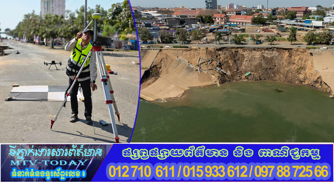ក្រុមការងារបច្ចេកទេស ក្រសួងសាធារណការ និងដឹកជញ្ជូន ចុះពិនិត្យ និងសិក្សាច្រាំងទន្លេមេគង្គដែលបានបាក់ស្រុតនៅទីក្រុងកំពង់ចាម