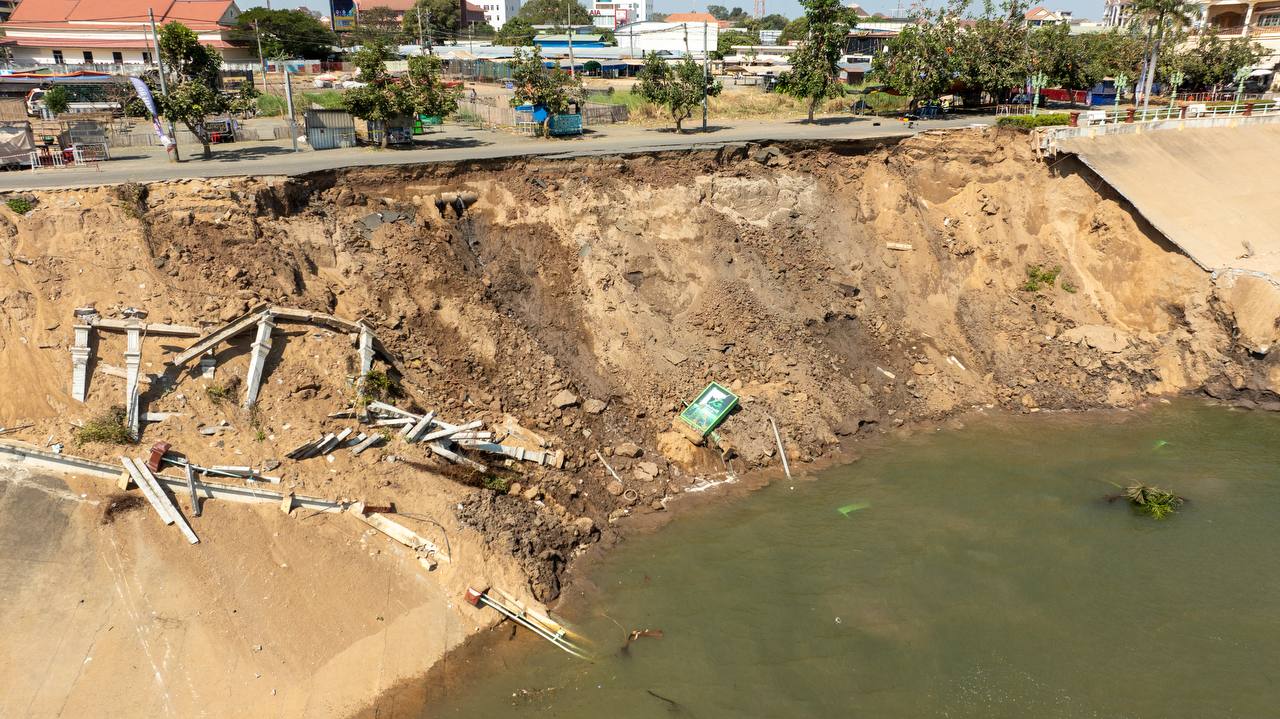 គួរបញ្ជាក់ថា ច្រាំងទន្លេមេគង្គទីតាំងខាងលើ បានស្រុតបាក់ កាលពីយប់ថ្ងៃទី៣០ ខែមករា ឆ្នាំ២០២៦ ដែលមានបណ្តោយប្រវែង ៧៥ម៉ែត្រ និងបាក់ចូលប្រមាណពី ១៥ម៉ែត្រទៅ២០ម៉ែត្រ។ ទីតាំងច្រាំងនេះមានសភាពទ្រុឌទ្រោម និងប្រឈមហានិភ័យបាក់ស្រុតប្រវែងសរុបប្រមាណ៤០០ម៉ែត្រ៕