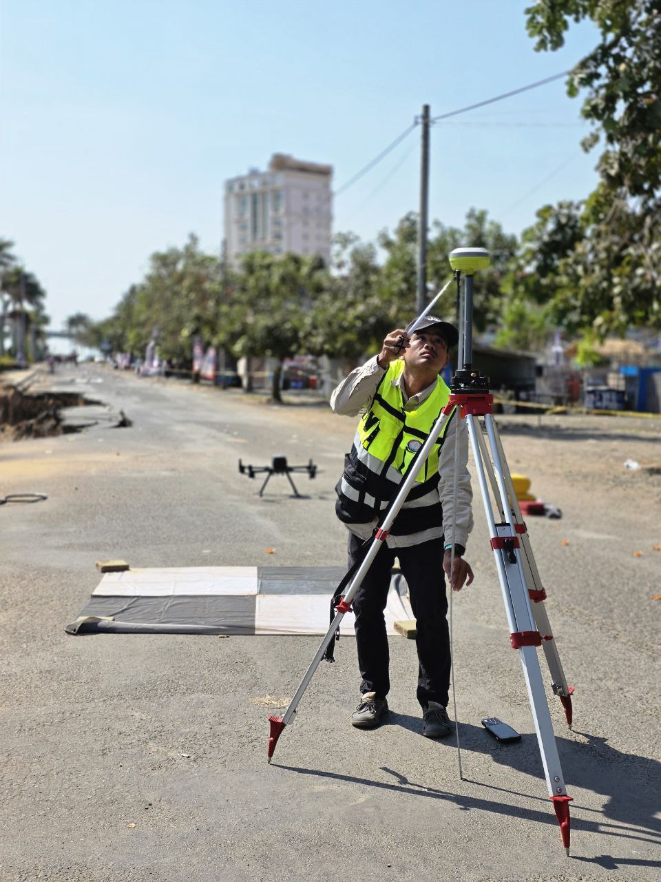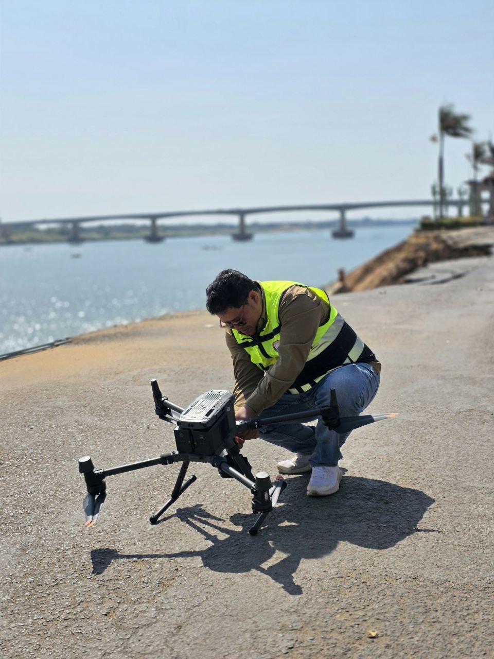 ក្រុមការងារបច្ចេកទេសបានប្រើប្រាស់ដ្រូនស្កេនរយៈកម្ពស់ដី និងប្រើប្រាស់ឧបករណ៍ Echo Sounder សំរាប់វាស់ស្ទង់ជម្រៅទឹក ដើម្បីប្រមូលទិន្នន័យសម្រាប់វិភាគនៅជុំវិញទីតាំងបាក់ស្រុត។ ក្រុមការងារបានប្រមូលទិន្នន័យលើគ្រប់ទិដ្ឋភាពបច្ចេកទេស និងធ្វើការវិភាគវាយតម្លៃលើបញ្ហាបាក់ស្រុតខាងលើឱ្យបានលម្អិត។