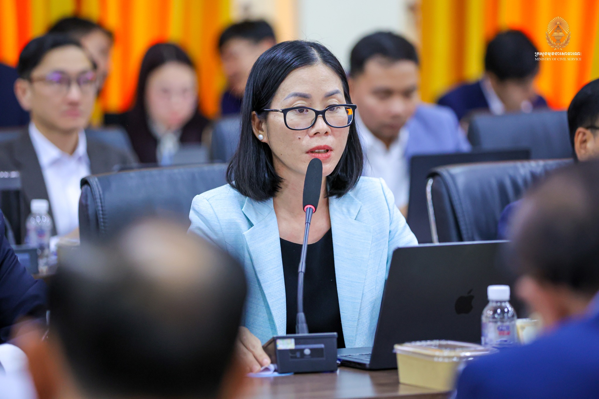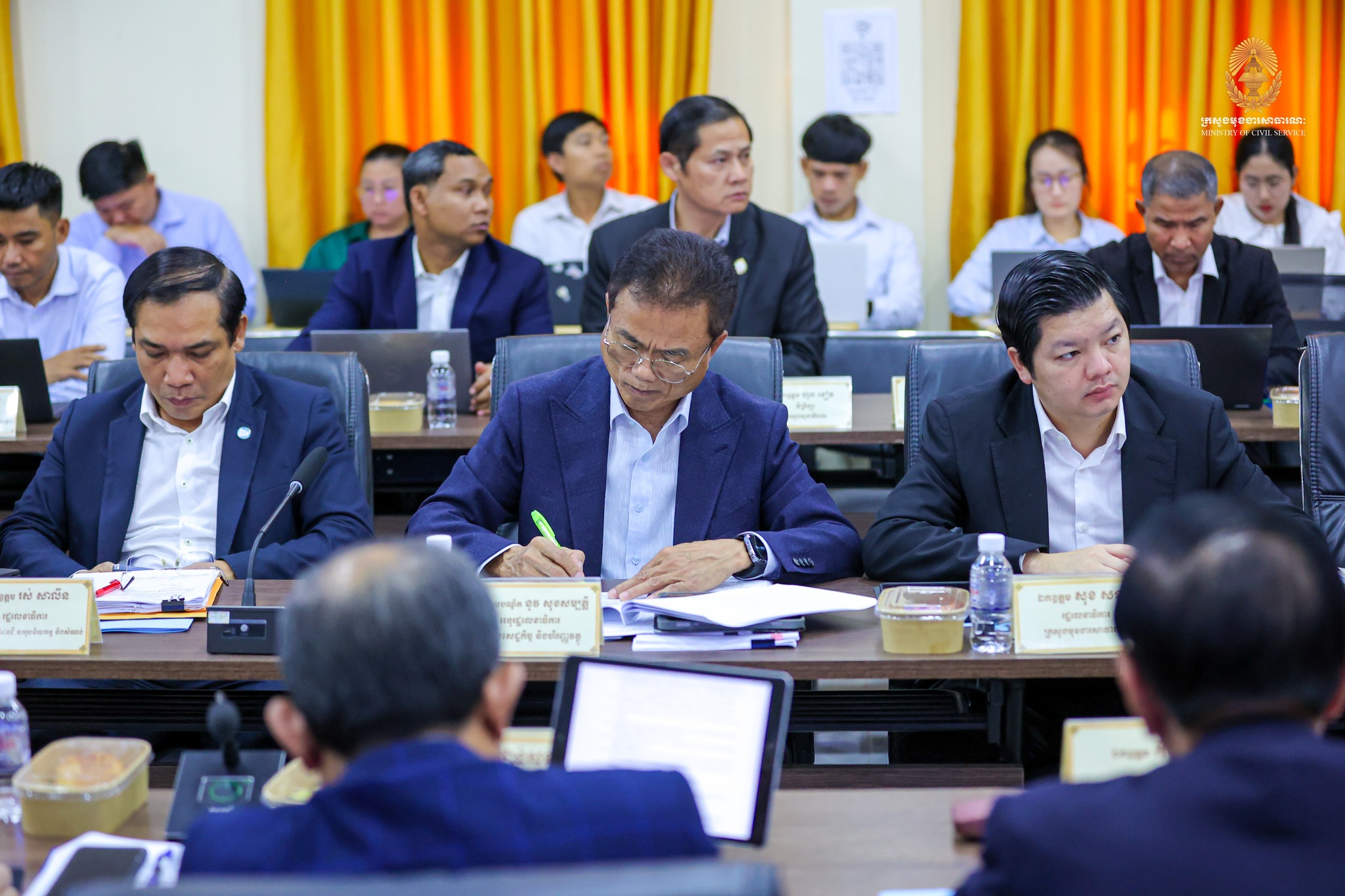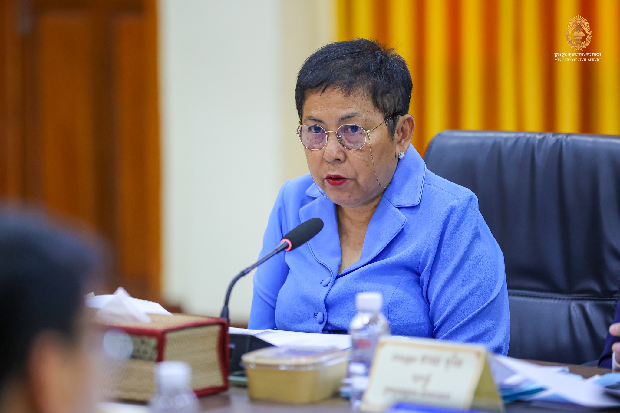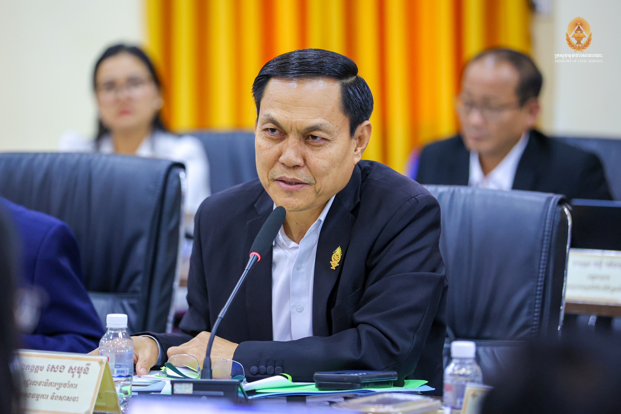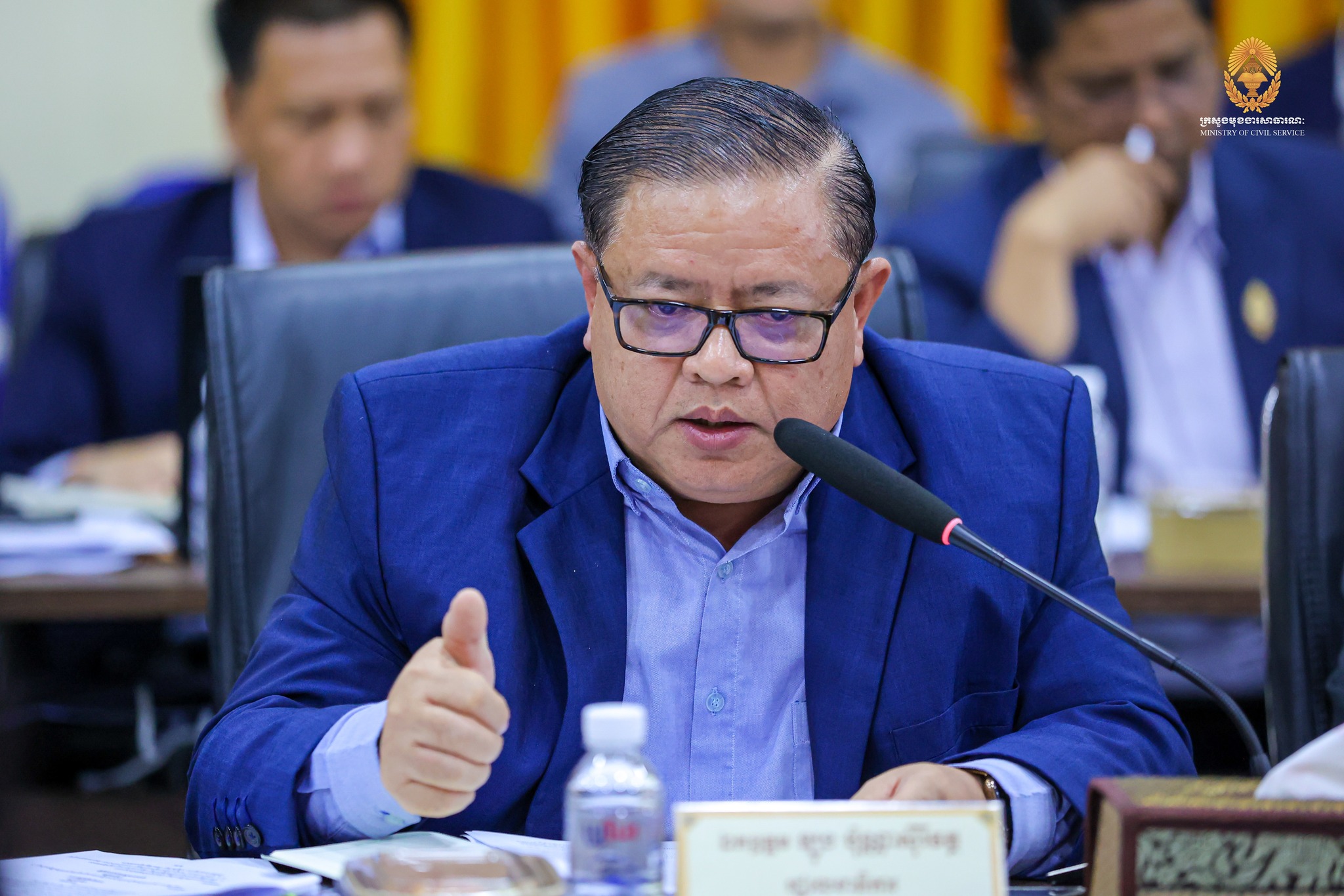 “កិច្ចពិភាក្សារបស់យើងនារសៀលនេះ ស្ថិតក្នុងការអនុវត្តវិធានការគន្លឹះទី២ ក្នុងការកែទម្រង់រដ្ឋបាលសាធារណៈ។ ទៀតសោត ការរៀបចំនិងការប្រព្រឹត្តទៅរបស់ក្រសួង ស្ថាប័ន គឺស្របទៅតាមគោលការណ៍ណែនាំរបស់ សម្តេចមហាបវរធិបតី «ពង្រឹងជាជាងពង្រីក» និង «រៀបចំផ្ទះរបស់ខ្លួនឱ្យរៀបរយ» ព្រមទាំងមានភាពប្រទាក់ក្រឡាគ្នាក្នុងជវភាពនៃប្រព័ន្ធតួអង្គតែមួយ។” ឯកឧត្តមបានបន្ថែម។
