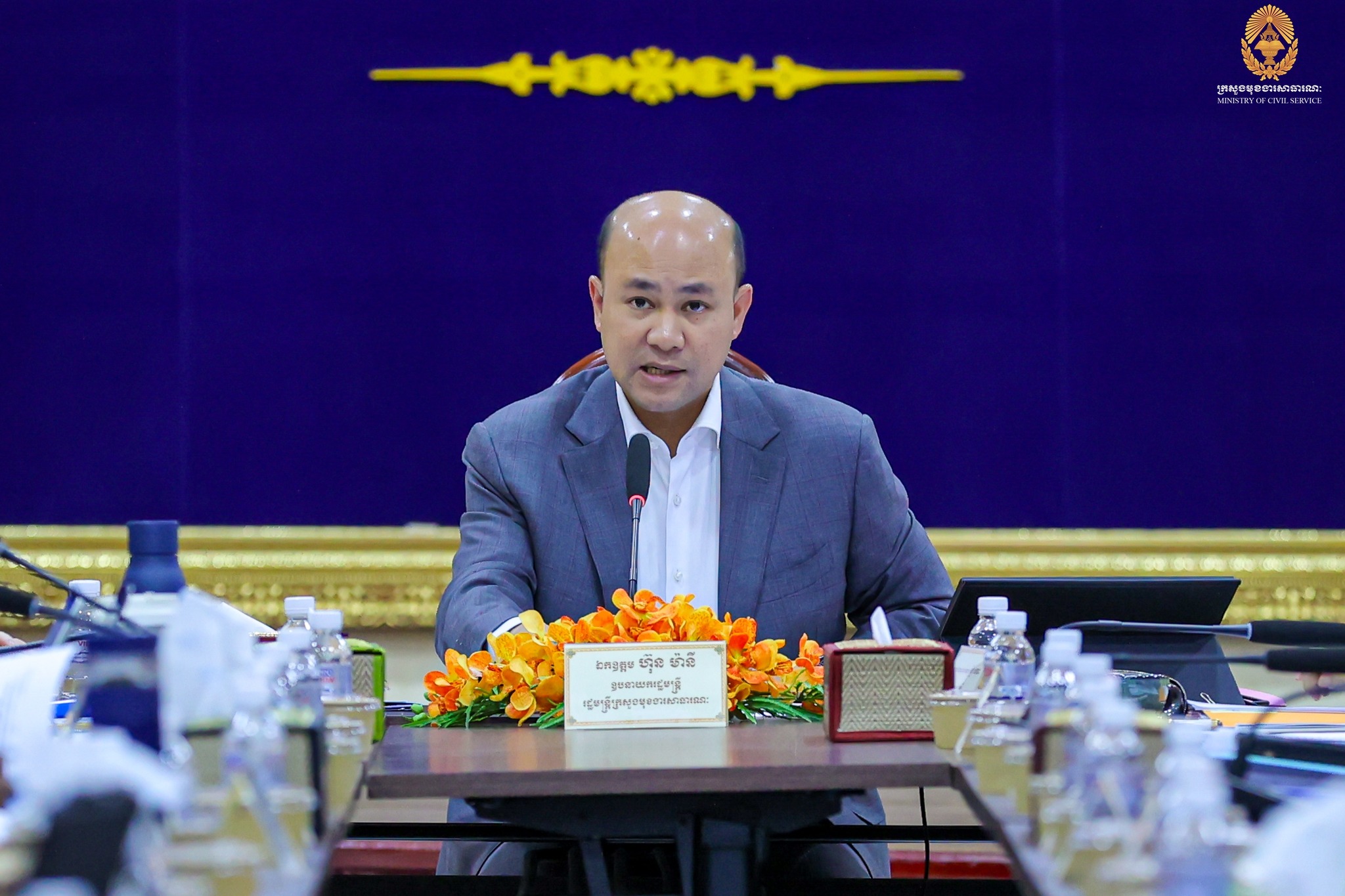 មានប្រសាសន៍ក្នុងកិច្ចប្រជុំនាពេលនេះ ឯកឧត្តមឧបនាយករដ្ឋមន្ត្រី ហ៊ុន ម៉ានី បានលើកឡើងថា “រាជរដ្ឋាភិបាល នីតិកាលទី៧ នៃរដ្ឋសភា ក្រោមការដឹកនាំប្រកបដោយភាពស្វាហាប់ ឈ្លាសវៃ និងចក្ខុវិស័យវែងឆ្ងាយរបស់ សម្តេចធិបតី នាយករដ្ឋមន្ត្រី បានយកចិត្តទុកដាក់លើការងារអភិបាលកិច្ច និងការកែទម្រង់រដ្ឋបាលសាធារណៈ ព្រមទាំងបានចាត់ទុកការកែទម្រង់រដ្ឋបាលសាធារណៈ ជាបេះដូងនៃការកែទម្រង់ និងប្រសិទ្ធភាពរបស់រាជរដ្ឋាភិបាល។ ប្រាកដណាស់ រាជរដ្ឋាភិបាល នីតិកាលទី៧ នៃរដ្ឋសភា បានបន្តបេសកកម្ម ការកែទម្រង់រដ្ឋបាលសាធារណៈ ពីអាណត្តិមុនៗ ក្នុងនោះ ដោយធ្វើការសម្រួចមុំ។ ជាមួយគ្នានេះ គណៈកម្មការជាតិជំរុញការអនុវត្តវិធានការគន្លឹះ ក្នុងការកែទម្រង់រដ្ឋបាលសាធារណៈ របស់រាជរដ្ឋាភិបាល នីតិកាលទី៧ នៃរដ្ឋសភា (គ.វ.រ.) ដែលដឹកនាំដោយសម្តេមហាបវរធិបតី ផ្ទាល់ ក្នុងការដាក់ចេញការអនុវត្តវិធានការគន្លឹះទាំង៣ ក្នុងការកែទម្រង់រដ្ឋបាលសារណៈ។