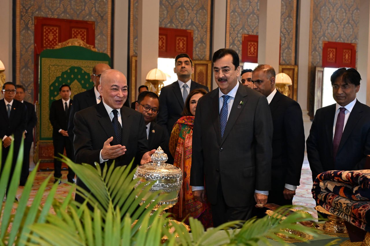 ព្ររះករុណា ព្រះបាទសម្តេចព្រះបរមនាថ នរោត្តម សីហមុនី ព្រះមហាក្សត្រនៃព្រះរាជាណាចក្រកម្ពុជា ជាទីគោរពសក្ការៈដ៏ខ្ពង់ខ្ពស់បំផុត ព្រះអង្គសព្វព្រះរាជហឬទ័យ ព្រះបរមរាជានុញ្ញាត ជូនឯកឧត្តម ស៊ីយ៉េដ យូសាហ្វ រ៉ាហ្សា ជីឡានី (H.E. Syed Yousaf Raza Gilani) ប្រធានព្រឹទ្ធសភា នៃសាធារណរដ្ឋឥស្លាមប៉ាគីស្ថាន ចូលក្រាបបង្គំគាល់