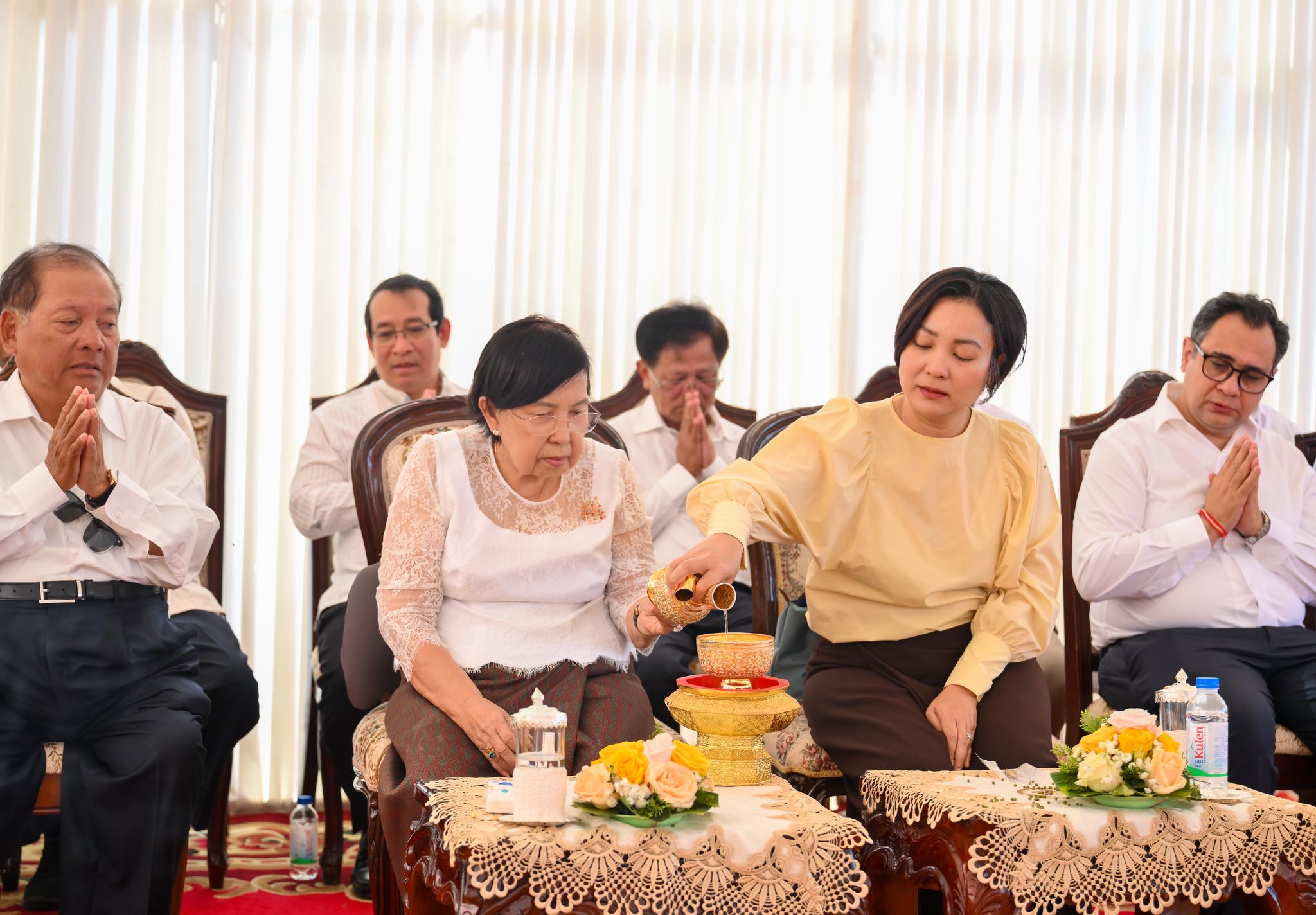 ខេត្តកំពង់ធំ ៖ លោកជំទាវ ខៀវ ស៊ីណា ជា ចាន់តូ និង លោកជំទាវបណ្ឌិត ជា សិរី ទេសាភិបាល ធនាគារជាតិនៃកម្ពុជា បានអញ្ជើញជាអធិបតីក្នុងពិធីបញ្ចុះបឋមសិលាបើកការដ្ឋានសាងសង់វិទ្យាល័យ ជា ចាន់តូ នាថ្ងៃទី១៩ ខែកុម្ភៈ ឆ្នាំ២០២៦ នៅស្រុកសន្ទុក ខេត្តកំពង់ធំ ដោយមានការចូលរួមពីអាជ្ញាធរស្រុក-ឃុំ គណៈគ្រប់គ្រងនៃបណ្តាគ្រឹះស្ថានសិក្សា លោកគ្រូ-អ្នកគ្រូ សិស្សានុសិស្ស និងអាណាព្យាបាលជាច្រើនរូប។