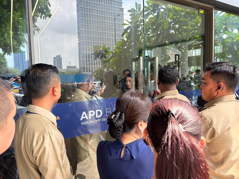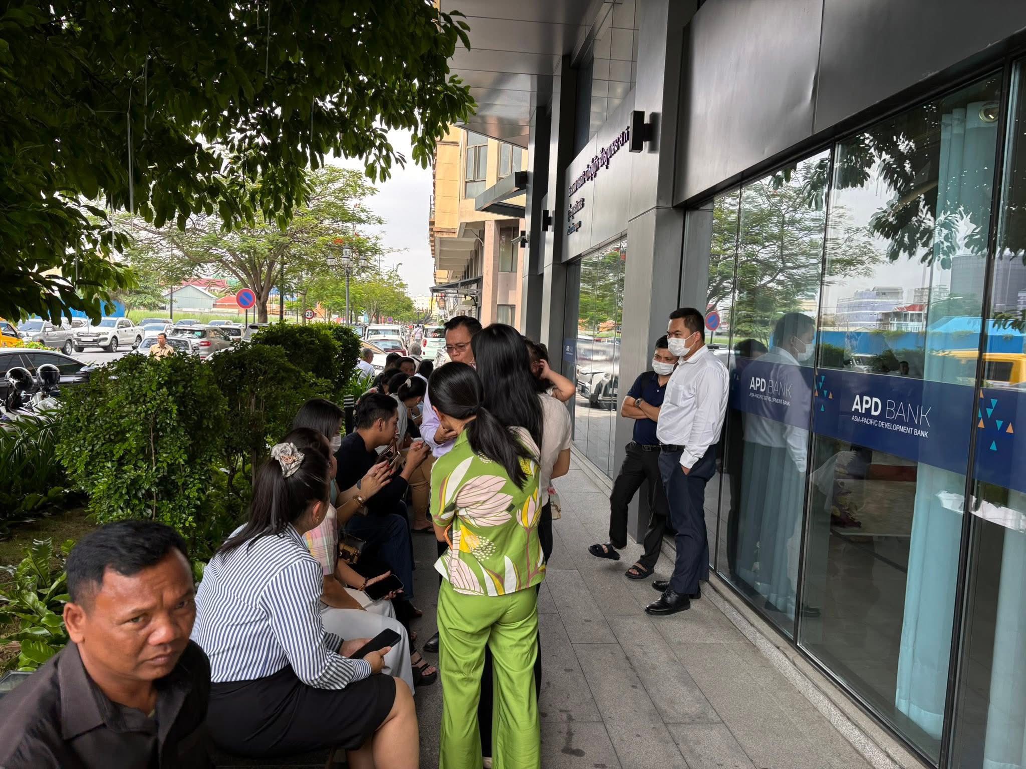 អតិថិជនរបស់ធនាគារ APD Bank រាប់រយនាក់ បាននាំគ្នាមកសម្រុកដកលុយ នៅការិយាល័យកណ្ដាល ដែលមានទីតាំងស្ថិតនៅបឹងកក់ បន្ទាប់ពីធនាគារប្រកាសផ្អាកប្រតិបត្តិការសេវា