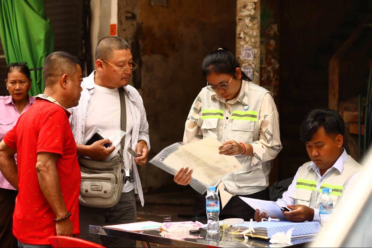 ក្រុមការងារក្រសួងរៀបចំដែនដី នគរូបនីយកម្ម និងសំណង់បានចុះពិនិត្យវឌ្ឍនភាពការងារ និងបញ្ជប់ការធ្វើអត្តសញ្ញាណកម្មប្រជាពលរដ្ឋដែលស្នាក់នៅក្នុងអគារអតីតសណ្ឋាគារសុខមានជ័យ