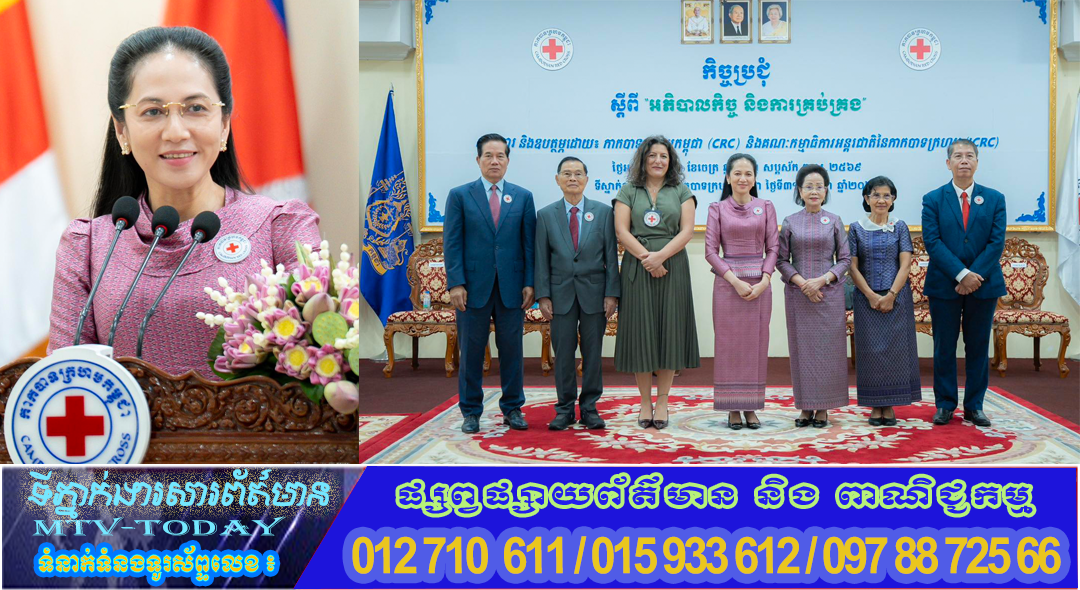 លោកជំទាវបណ្ឌិត ពេជ ចន្ទមុន្នី ហ៊ុនម៉ាណែត អនុប្រធានអចិន្ត្រៃយ៍កាកបាទក្រហមកម្ពុជា អញ្ជើញចូលរួមពិធីបិទកិច្ចប្រជុំស្តីពី “អភិបាលកិច្ច និងការគ្រប់គ្រង”