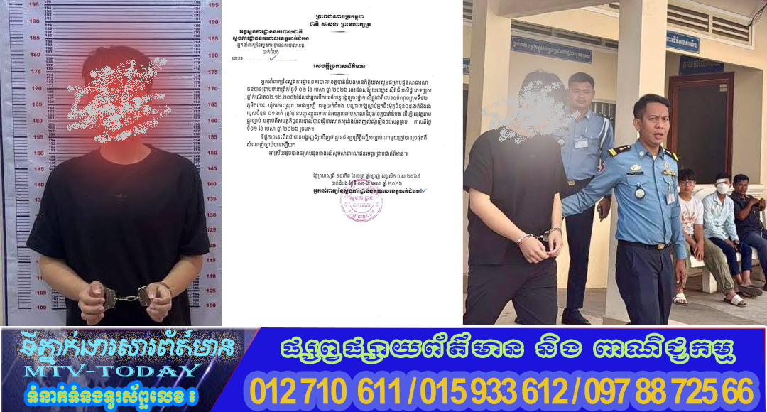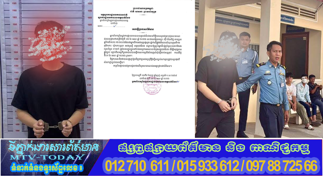 សមត្ថកិច្ចនគរបាលបានបញ្ជូនជនសង័្សយឈ្មោះ ស៊ីវ ជ័យសិទ្ធ ភេទប្រុស ទៅកាន់អយ្យការអមសាលាដំបូងខេត្តបាត់ដំបង ដេីម្បីអនុវត្តទោសតាមផ្លូវច្បាប់