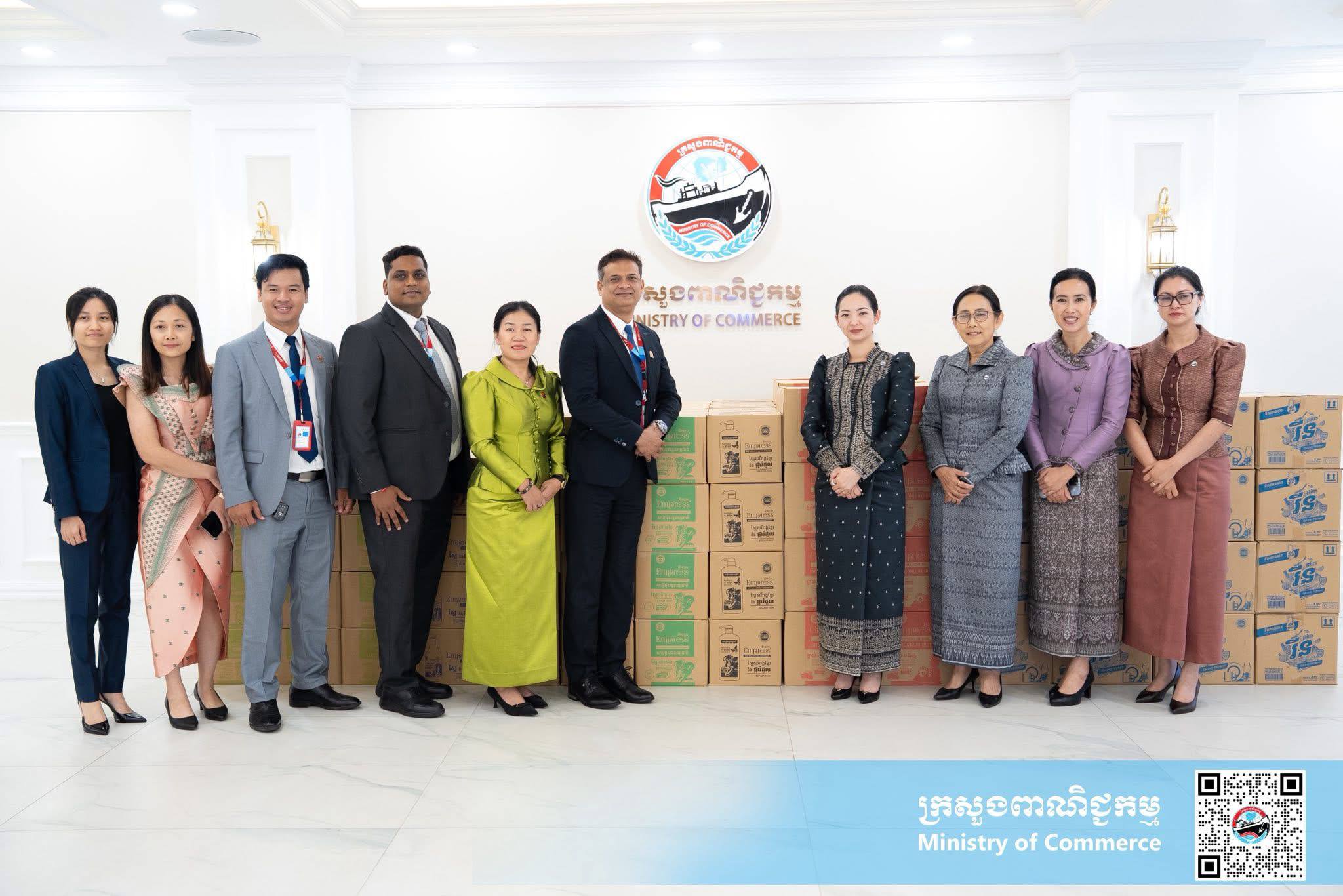 ជាកិច្ចចាប់ផ្តើម លោកជំទាវរដ្ឋមន្រ្តី បានសម្តែងការស្វាគមន៍យ៉ាងកក់ក្តៅចំពោះគណៈប្រតិភូរបស់ក្រុមហ៊ុន ព្រមទាំងបានថ្លែងកោតសរសើរ និងវាយតម្លៃខ្ពស់ចំពោះក្រុមហ៊ុនទាំងពីរ ដែលបានចូលរួមយ៉ាងសកម្មក្នុងការជួយជំរុញចរន្តទីផ្សារក្នុងស្រុក ក្នុងការផ្គត់ផ្គង់គ្រឿងឧបភោគ-បរិភាគ ចំណីអាហារ និងផលិតផលប្រើប្រាស់ប្រចាំថ្ងៃ ដែលមានគុណភាពខ្ពស់ ភាពសន្សំសំចៃ និងជម្រើសសម្បូរបែប ដែលឆ្លើយតបទៅនឹងតម្រូវការរបស់ប្រជាពលរដ្ឋកម្ពុជា ក៏ដូចជាការចូលរួមបង្កើតការងារដោយផ្ទាល់ និងប្រយោលដល់ប្រជាជនកម្ពុជា ផងដែរ។