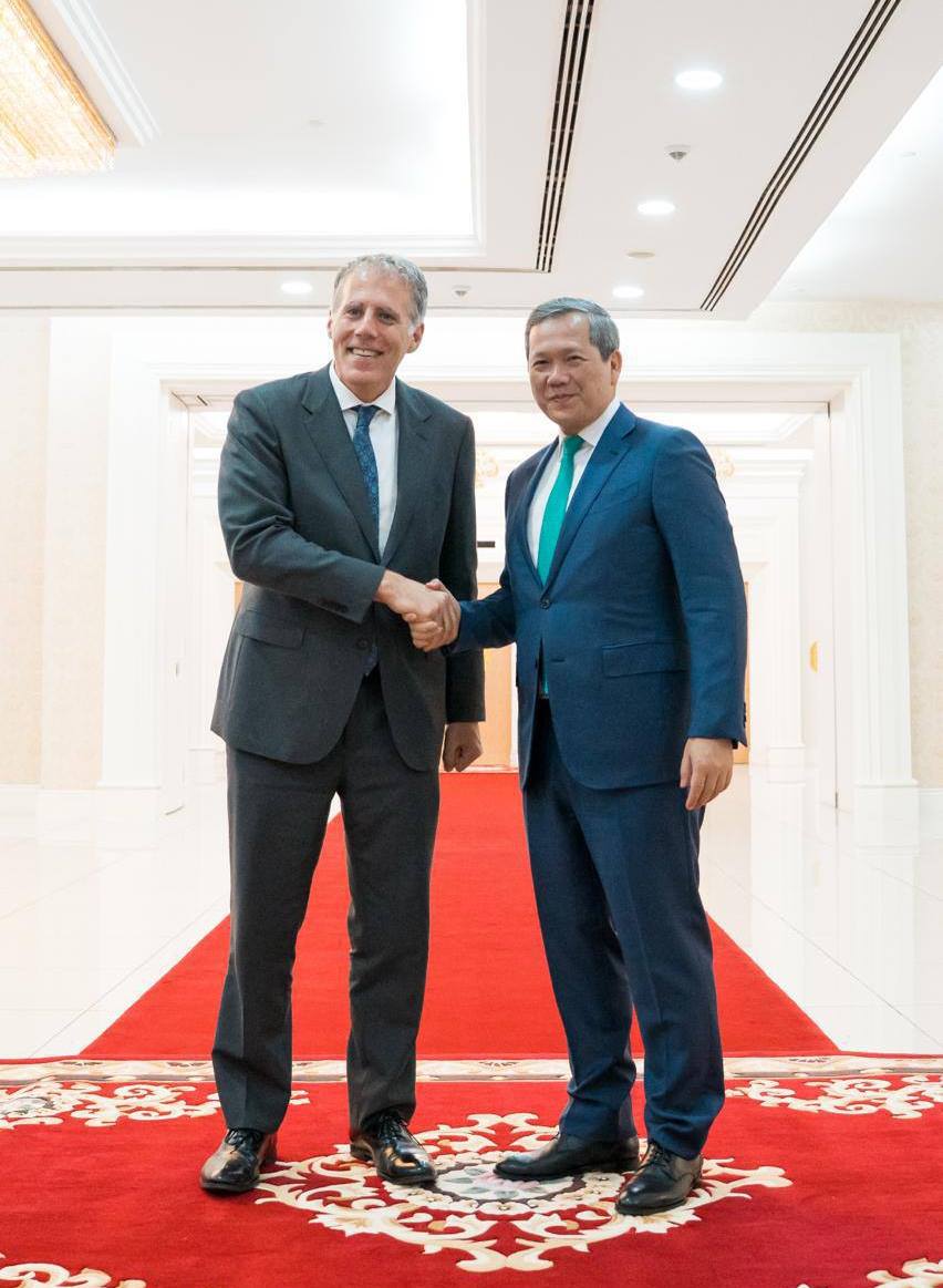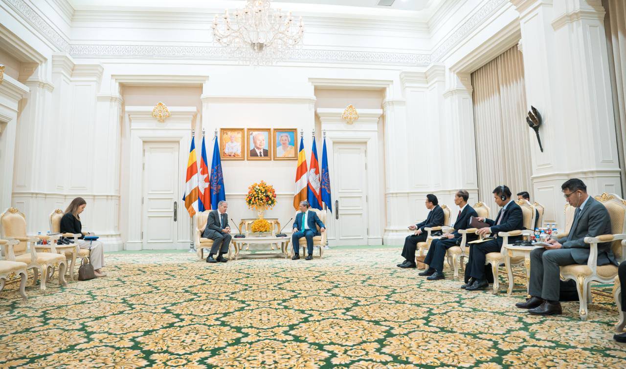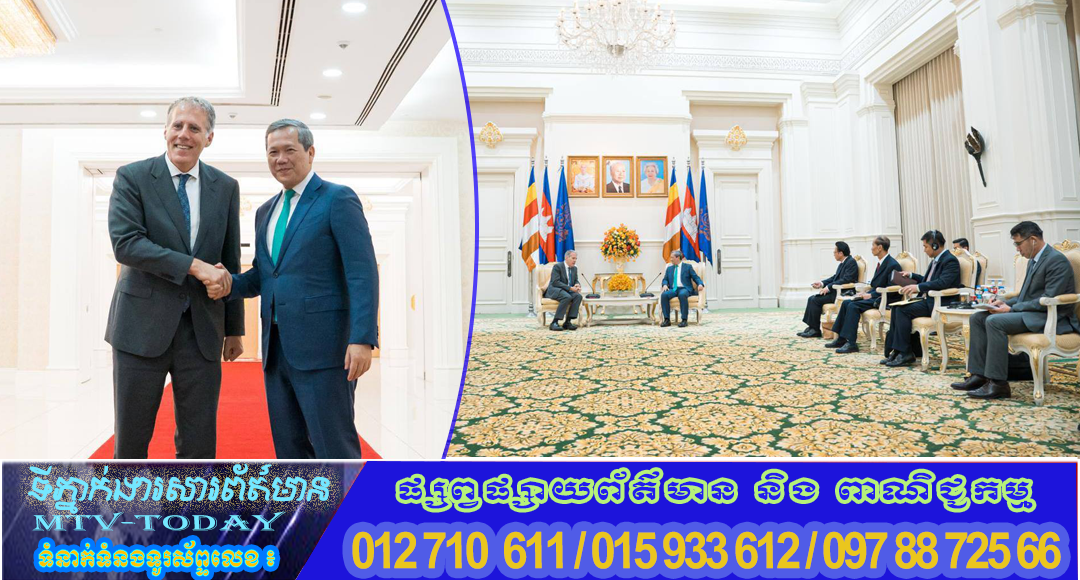 ភ្នំពេញ ៖ នាព្រឹកថ្ងៃទី២០ ខែមេសា ឆ្នាំ២០២៦, សម្ដេចមហាបវរធិបតី ហ៊ុន ម៉ាណែត នាយករដ្ឋមន្ត្រីនៃព្រះរាជាណាចក្រកម្ពុជា បានអនុញ្ញាតជូន ឯកឧត្តម Christian DesRoches ឯកអគ្គរដ្ឋទូតវិសាមញ្ញ និងពេញសមត្ថភាព នៃប្រទេសកាណាដា ប្រចាំព្រះរាជាណាចក្រកម្ពុជា ចូលជួបសម្ដែងការគួរសម និងពិភាក្សាការងារ នៅវិមានសន្តិភាព ។