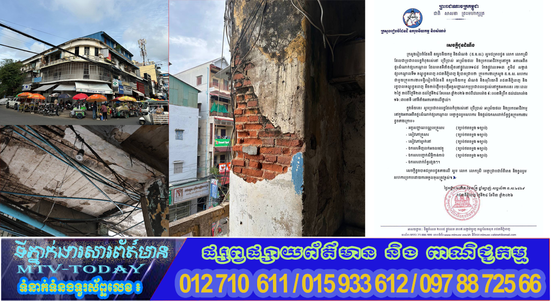 ក្រសួងរៀបចំដែនដី នគរូបនីយកម្ម និងសំណង់ ប្រកាស​ជម្រាបជូន បងប្អូនប្រជាពលរដ្ឋកំពុងរស់នៅ ប្រើប្រាស់អាស្រ័យផល និងប្រកបអាជីវកម្មនៅក្នុង អគារអតីតផ្ទះសំណាក់ផ្សារកណ្តាល