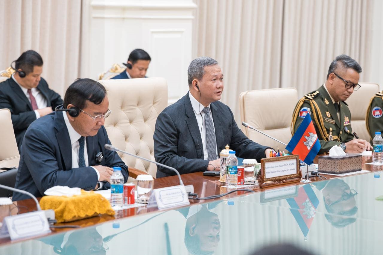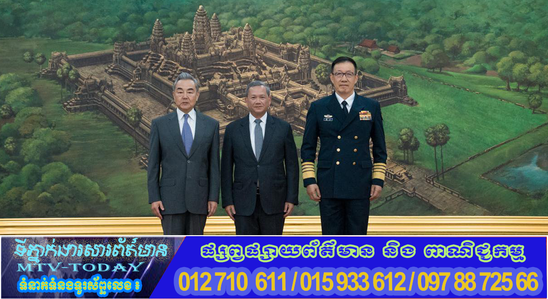 ភ្នំពេញ ៖ នារសៀលថ្ងៃទី២២ ខែមេសា ឆ្នាំ២០២៦ នៅវិមានសន្តិភាព, សម្ដេចមហាបវរធិបតី ហ៊ុន ម៉ាណែត នាយករដ្ឋមន្ត្រីនៃព្រះរាជាណាចក្រកម្ពុជា បានអនុញ្ញាតជូន ឯកឧត្តម វ៉ាង យី (WANG Yi) រដ្ឋមន្ត្រីក្រសួងការបរទេស និងឯកឧត្តមនាយឧត្តមនាវី តុង ជុន (DONG Jun) រដ្ឋមន្ត្រីក្រសួងការពារជាតិ នៃសាធារណរដ្ឋប្រជាមានិតចិន ចូលជួបសម្តែងការគួរសម និងពិភាក្សាការងារ ក្នុងឱកាសដែលរដ្ឋមន្ត្រីទាំងពីរអញ្ជើញចូលរួមធ្វើជាសហប្រធាននៃកិច្ចប្រជុំលើកទី១ នៃយន្តការកិច្ចសន្ទនាយុទ្ធសាស្ត្រ “២+២” រវាងរដ្ឋមន្ត្រីការបរទេស និងរដ្ឋមន្ត្រីការពារជាតិកម្ពុជា-ចិន ចាប់ពីថ្ងៃទី២២ ដល់ថ្ងៃទី២៣ ខែមេសា ឆ្នាំ២០២៦ នៅរាជធានីភ្នំពេញ។